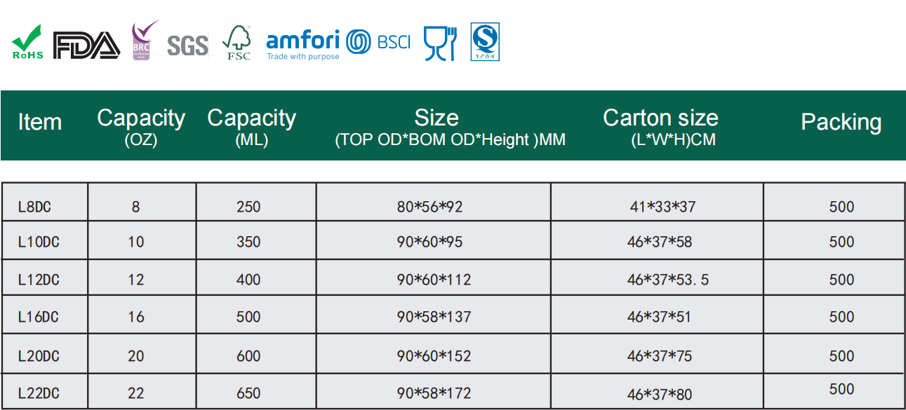 Certificates:BRC, FSC, DIN, FDA, LFGB, BSCI, ABA, BPI