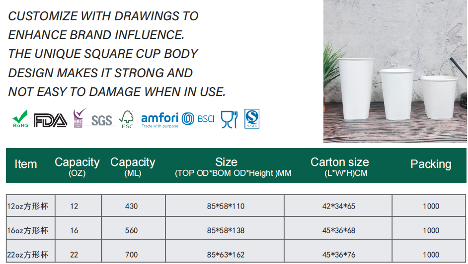 Home Paper Cup Square Paper Cup